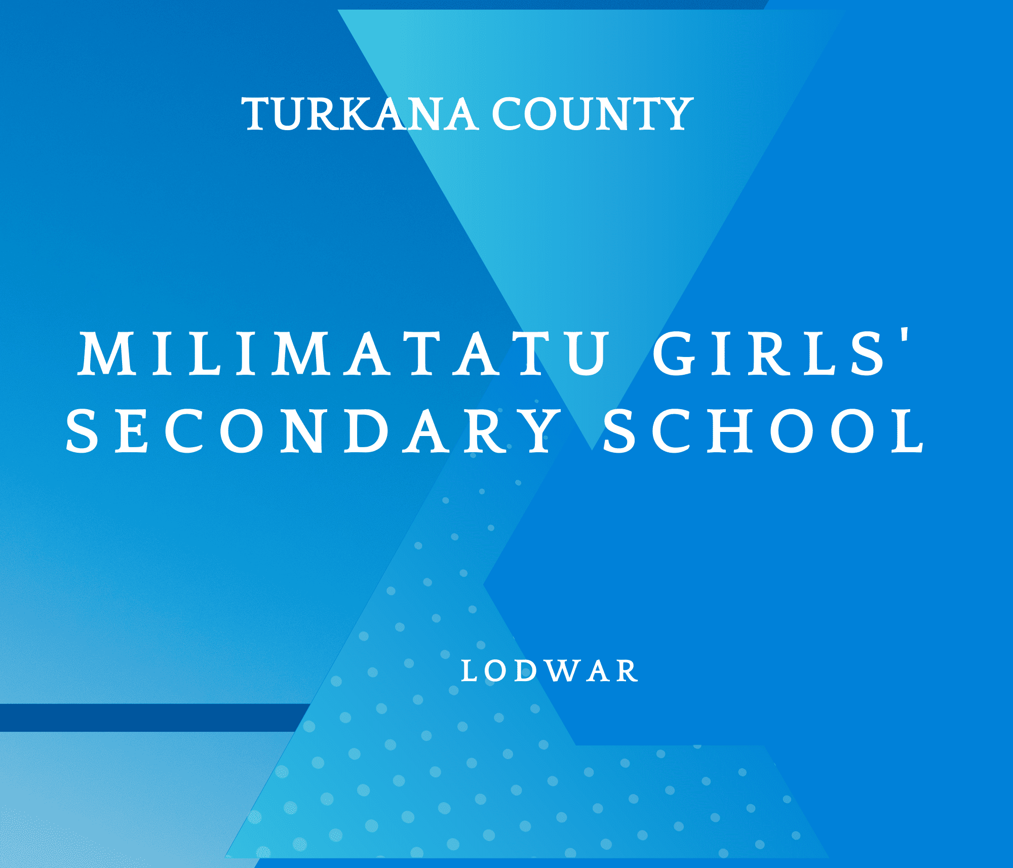 Milimatatu Girls’ Secondary School is a public boarding school for girls located in the rural Milimatatu region of Turkana County, Kenya. Founded in 2016 to serve girls from financially challenged families, the school draws students from Lokitaung, the lake zones, and surrounding areas. It is a hub for academic growth, moral development, and community empowerment, preparing students to become responsible, God-fearing citizens.